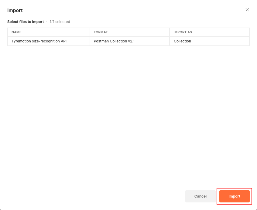 Select the TYREMOTION_API.postman_collection.json file you downloaded and import it into your Postman collections.